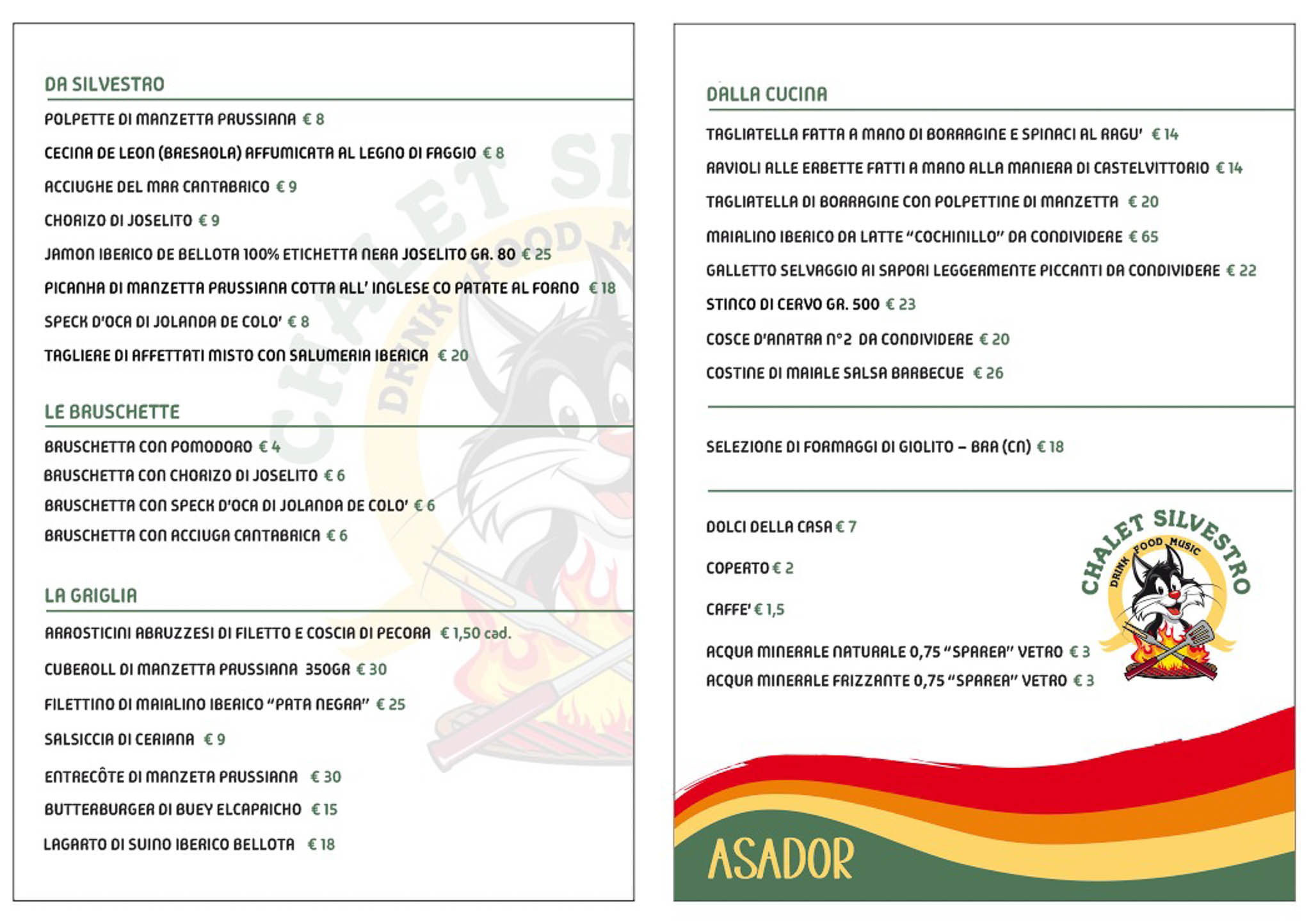 Chalet Silvestro nasce dal desiderio di trasformare una vita di viaggi, sport e incontri in un luogo dove il cibo diventa condivisione. Il titolare, ispirato dalle tradizioni culinarie scoperte in giro per il mondo – dalle tapas spagnole ai sapori autentici italiani – ha creato un ristorante che celebra qualità e autenticità.